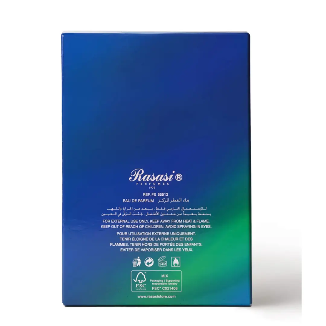 Rasasi Hawas perfume reminds you of the depths of the ocean. It goes deep into one’s heart. It has very rare notes, such as a salty taste and sea moss, which are found only in deep water.